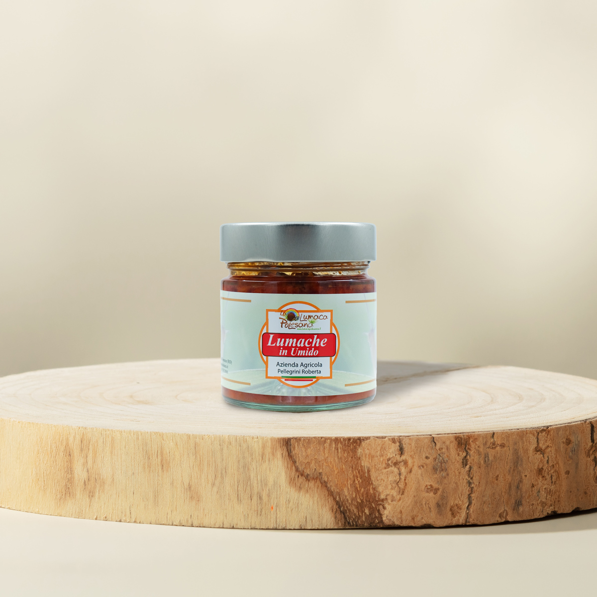 Ragu’ con polpa di lumaca intera, pomodoro e verdure acquistati da produttori agricoli italiani.
